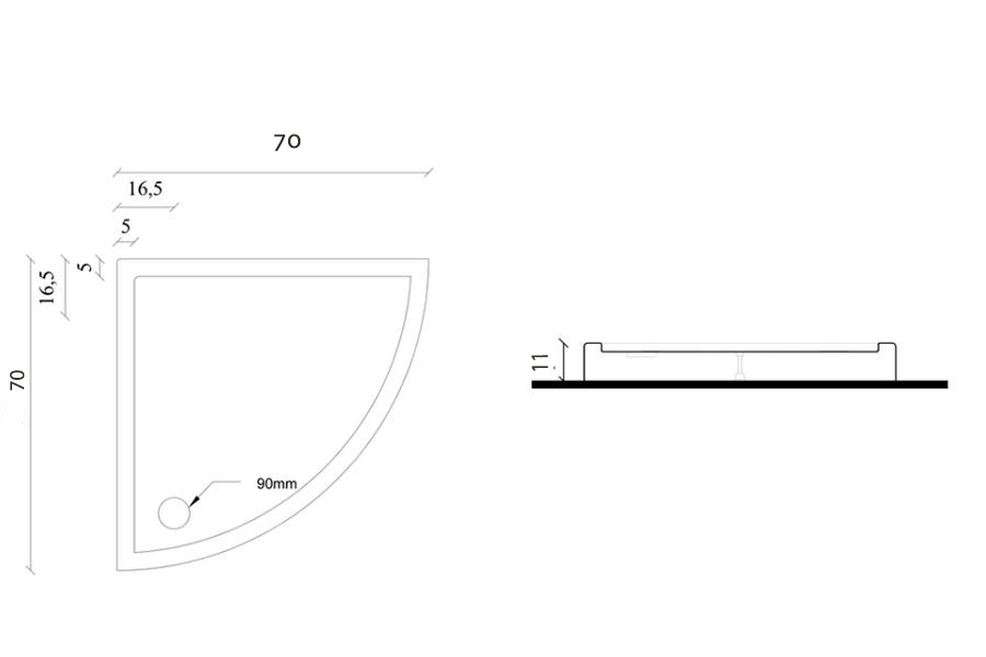 Akrilna tuš kad Nova 70x70 ima višino 11 cm, kar dovoljuje montažo sifona med ploščicami in kadjo.