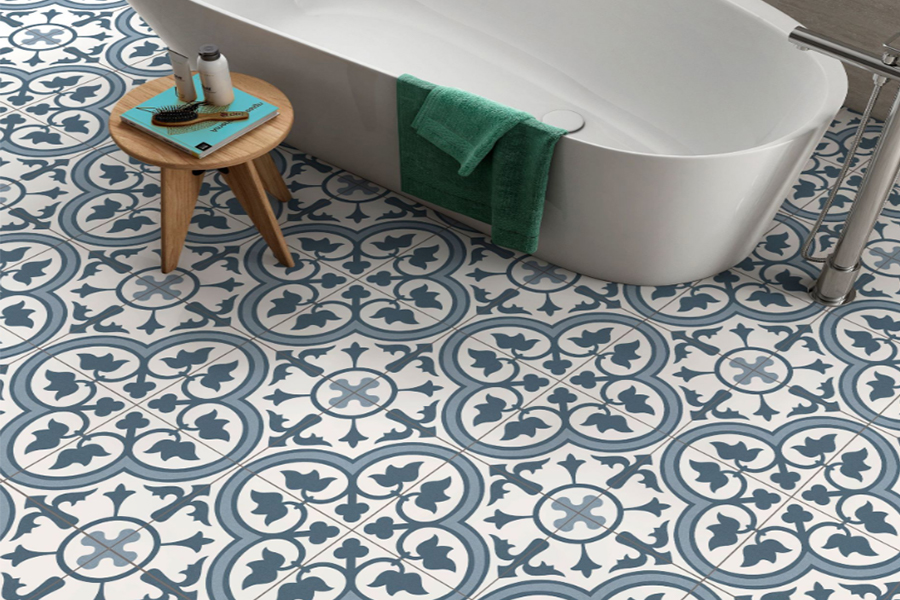 Keramične stenske in talne ploščice Dover Blue dimenzije 45x45 cm so izdelane iz bele gline, porcelain gres, ne retificirane.