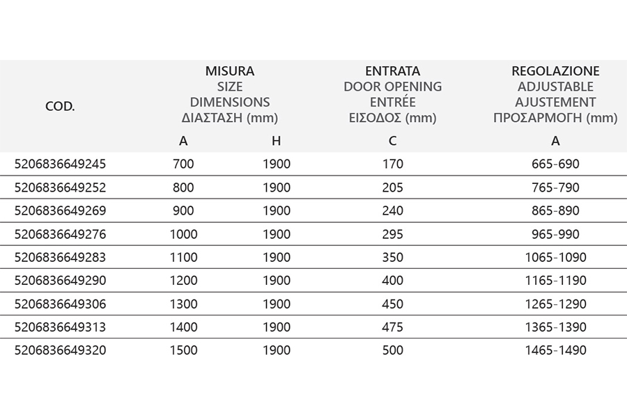 Nastavljive dimenzije tuš kabine: