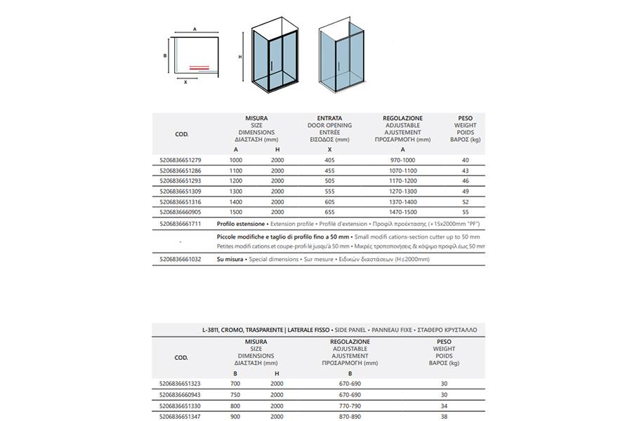 Tuš kabina Lea 400 krom dimenzije 700x1300x2000 mm.