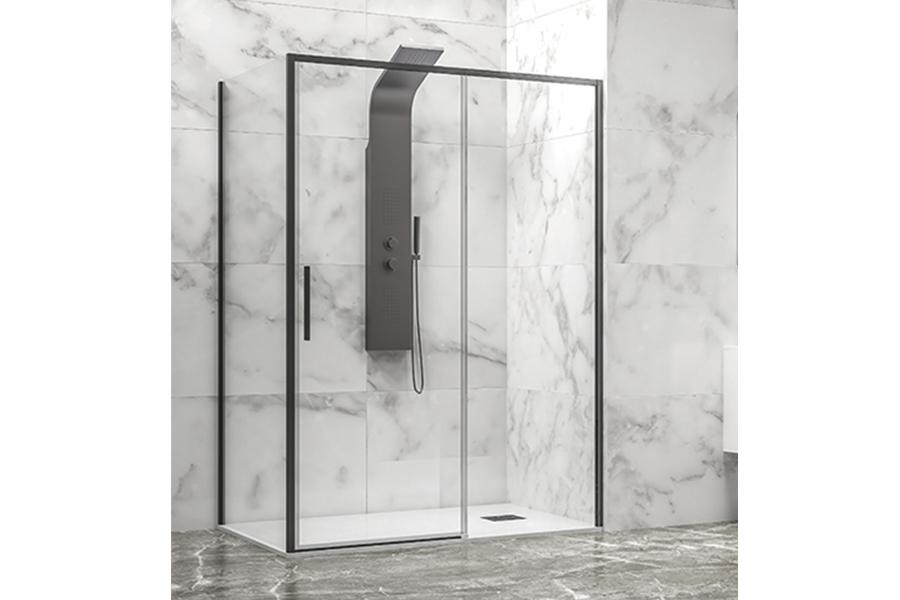 Pravokotna kabina z eno fiksno tuš steno in drsnima vratoma.