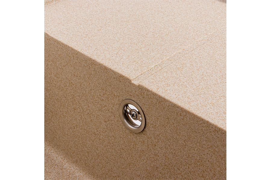 Kvalitetno pomivalno korito iz umetnega kamna.