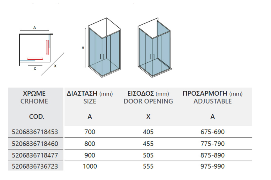 Pravokotna tuš kabina Lea 100 krom 80x100: