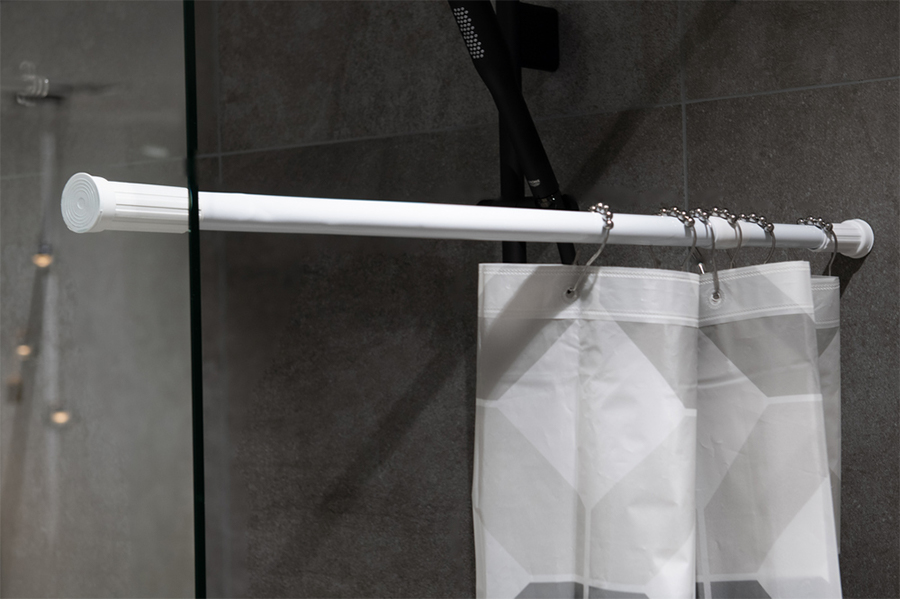 Ta nosilec za tuš zaveso je izjemno enostaven za namestitev, saj ne zahteva vrtanja. Preprosto ga namestite med dve steni in prilagodite dolžino. Gumijasti, nedrseči končki zagotavljajo, da ostane varno na svojem mestu. Dolžina palice za tuš zaveso je nastavljiva in znaša od 140 do 260 cm.