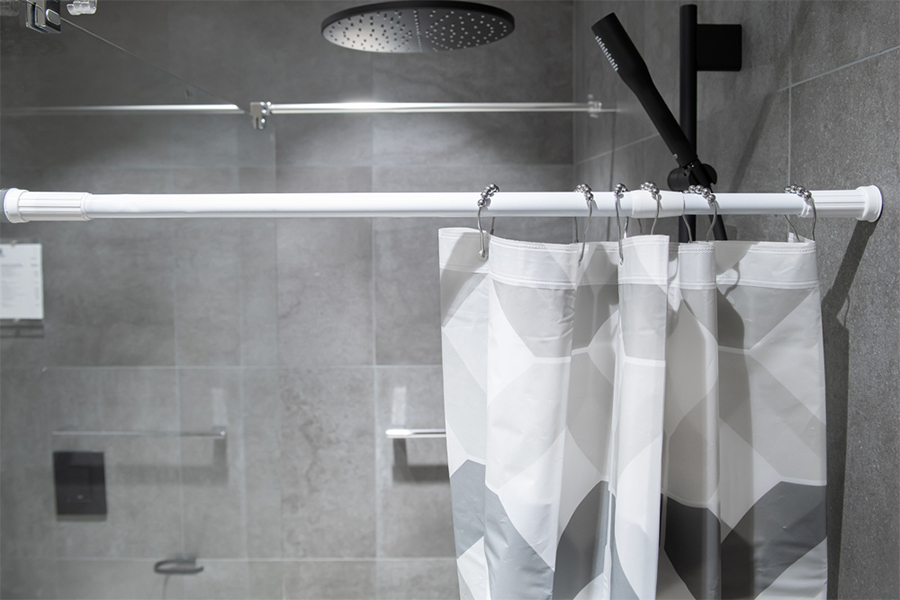 Ta nosilec za tuš zaveso je izjemno enostaven za namestitev, saj ne zahteva vrtanja. Preprosto ga namestite med dve steni in prilagodite dolžino. Gumijasti, nedrseči končki zagotavljajo, da ostane varno na svojem mestu. Dolžina palice za tuš zaveso je nastavljiva in znaša od 70 do 120 cm.