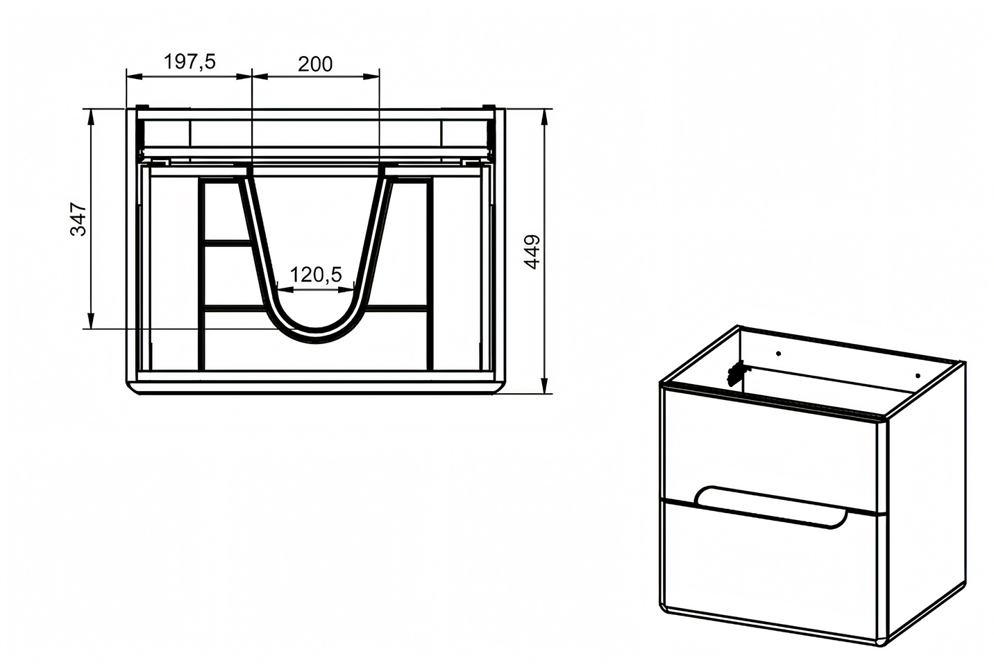 Dimenzije omarice: širina 595 mm, višina 575 mm, globina 450 mm