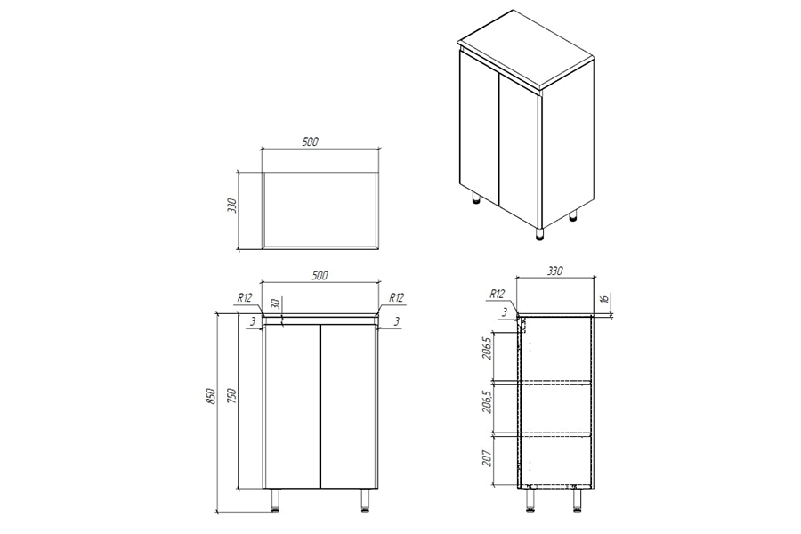Dimenzije: širina 500 mm, višina 850 mm, globina 330 mm.