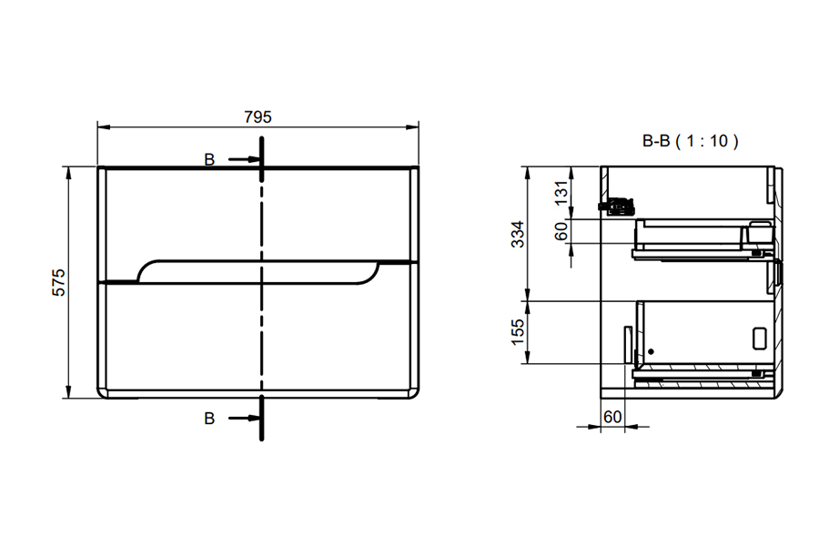 Dimenzije omarice: širina 795 mm, višina 575 mm, globina 450 mm