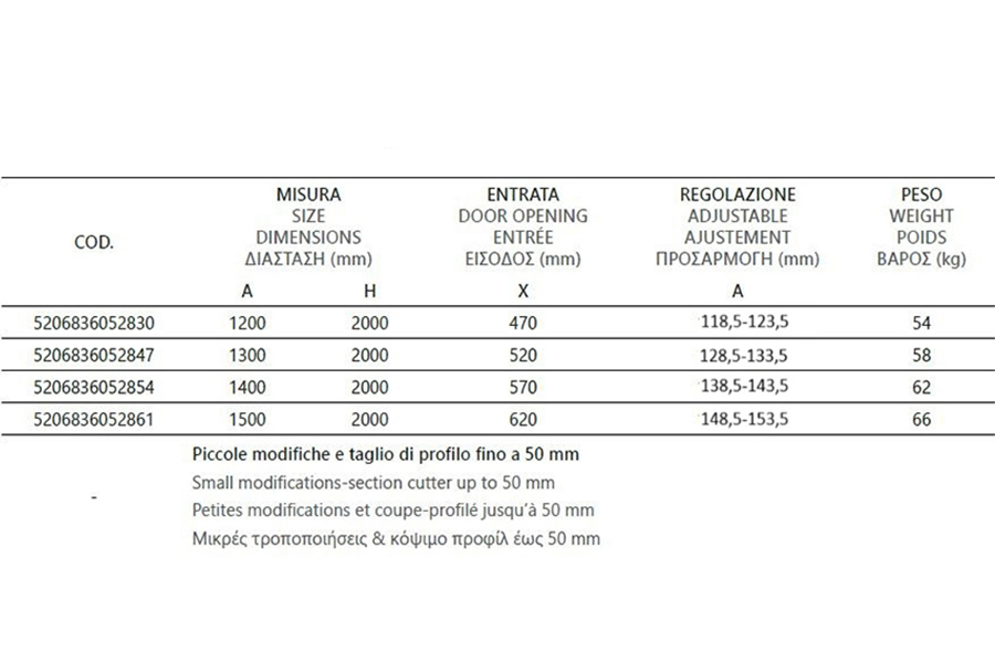 Odprtina vrat: 530 mm