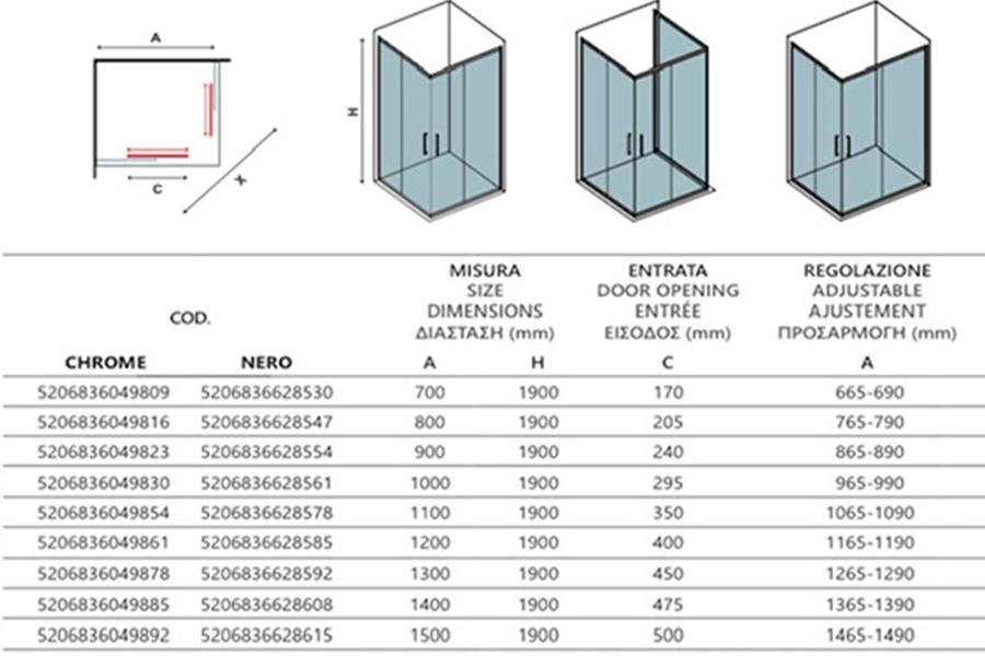 Nastavljive dimenzije tuš kabine: