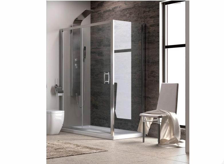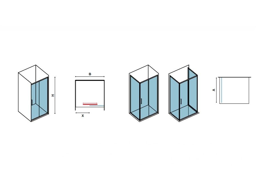 Pravokotna kabina z eno fiksno tuš steno in drsnima vratoma.
