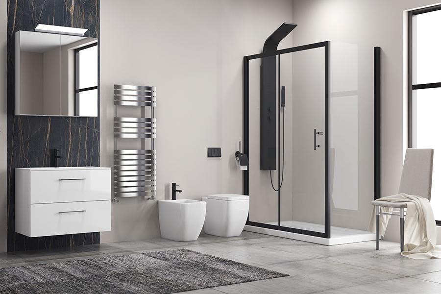 Tuš kabina Flora 500 Nero je pokrita s premazom proti vodnemu kamnu.