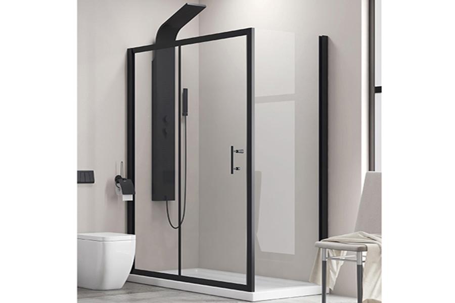 Pravokotna kabina z eno fiksno tuš steno in drsnima vratoma.