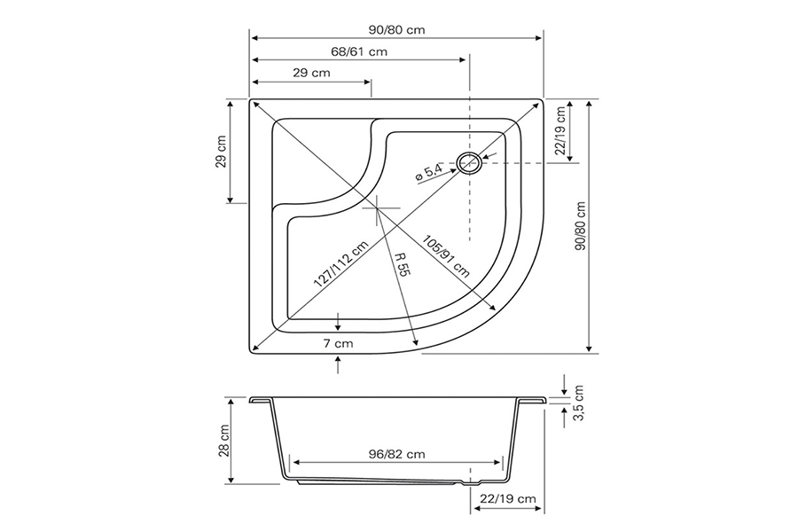 Tuš kad Malta 90x90 je polkrožna kad. Izdelana iz vrhunskega sanitarnega akrila, ki preprečuje nastanek bakterij. Enostavna za namestitev in vzdrževanje.