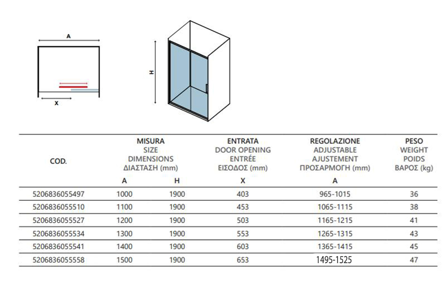 Tuš vrata Efe 400 Oro dimenzije 1100x1900 mm.