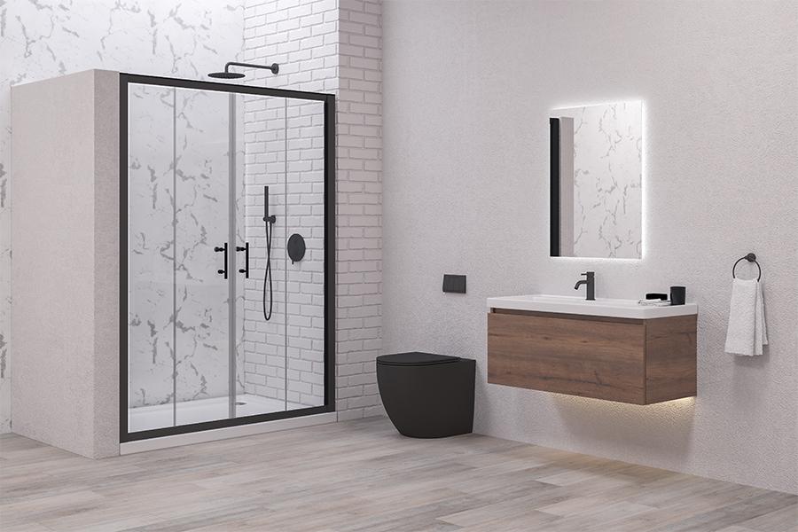 Sestavljena je iz Flora 100 Nero 80x190 + Flora 100 Nero 90x190 + profil wall-to-wall YS22 1574mm Nero.