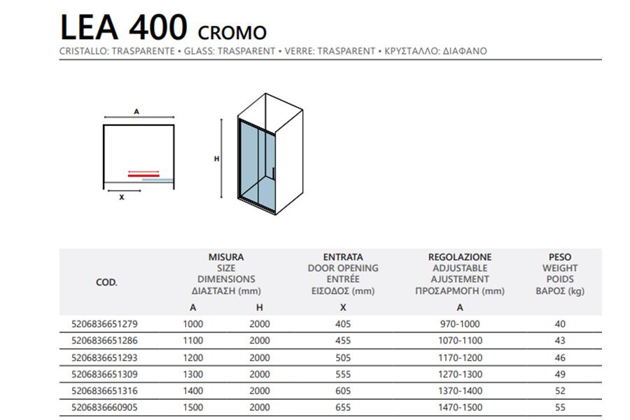 Tuš vrata Lea 400 dimenzije 1300x2000 mm.