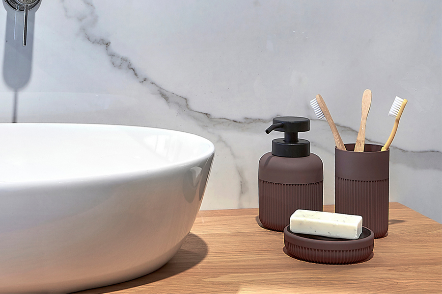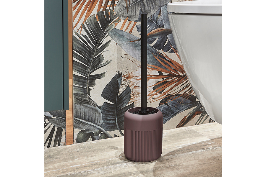 WC ščetka Loreto v edinstveni, umirjeni slivovo vijolični barvi je pravi kopalniški dodatek. Držalo za ščetko je izdelano iz mat plastike, kar mu daje eleganten videz, okrasni utori pa prispevajo k izjemni estetski privlačnosti. Ročaj in čistilna glava sta v temno črni barvi, ki se lepo dopolnjujeta z umirjenim vijoličnim odtenkom držala, zaradi česar je straniščna ščetka Loreto edinstven dodatek vsaki kopalnici.