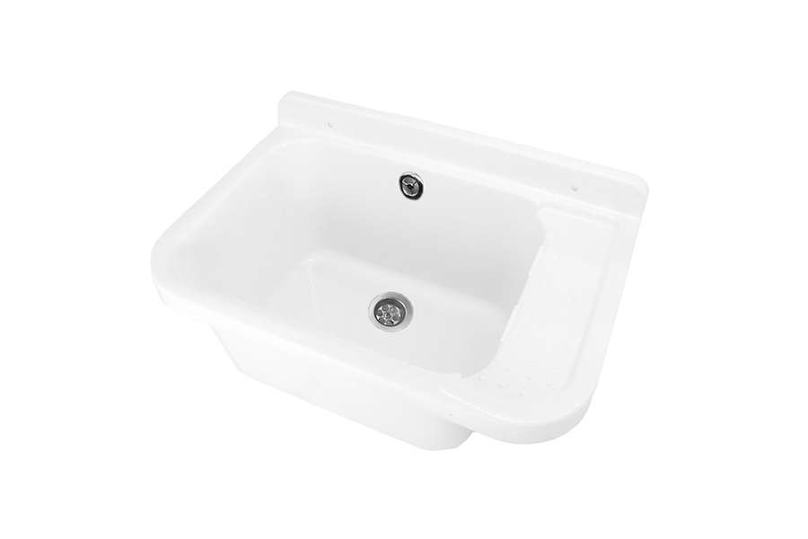 Zunanje korito DES 50 White s poličko, sifonom in materialom za montažo